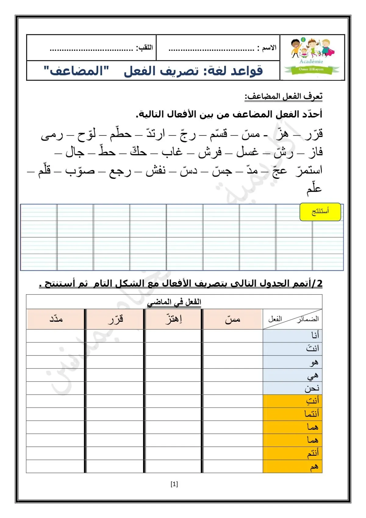 قواعدّلغة: تصريفّ الفعلّّّّ"المضاعف"